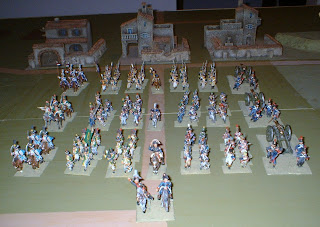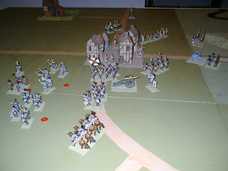 The third column of two infantry brigades approach the village from the north.They are met by the elite 10th brigade, who are deployed in line.The Prussians easily hold their own in a skirmish and fire fight.
